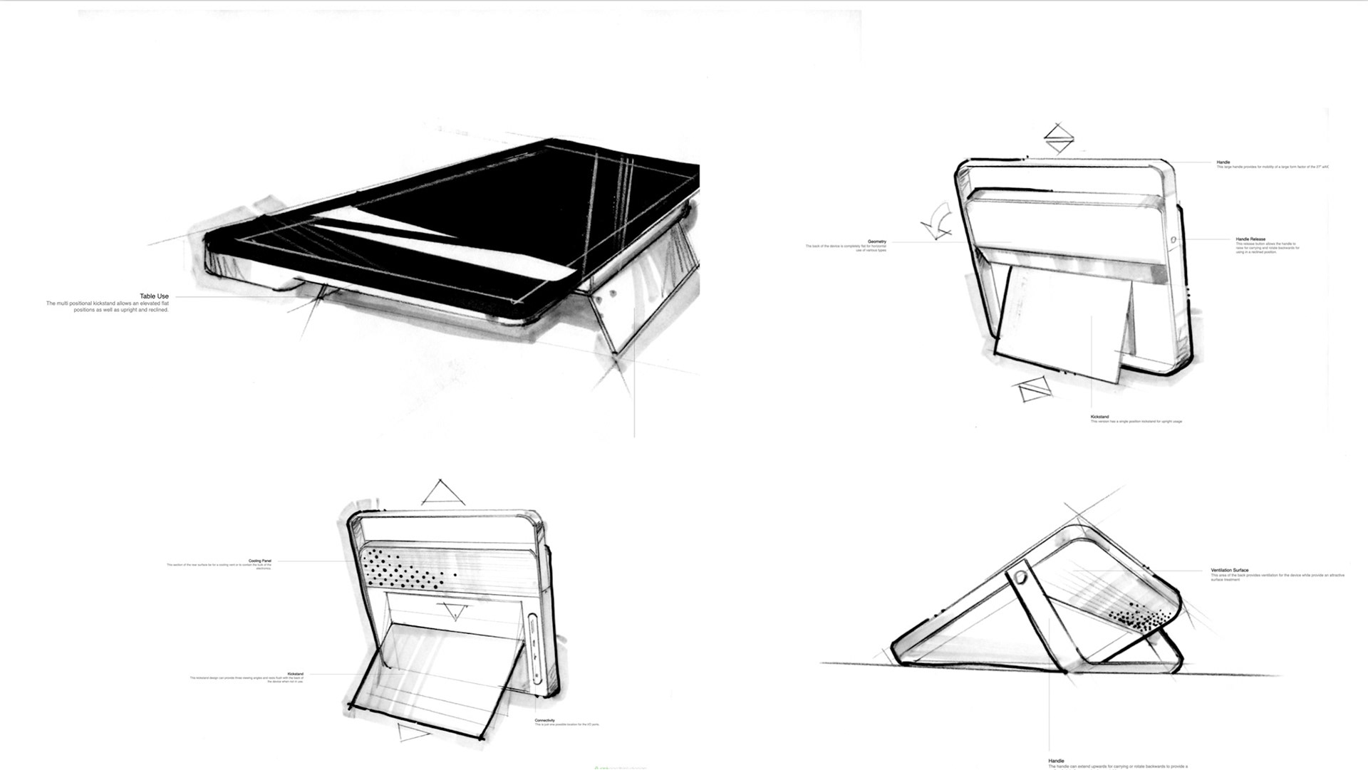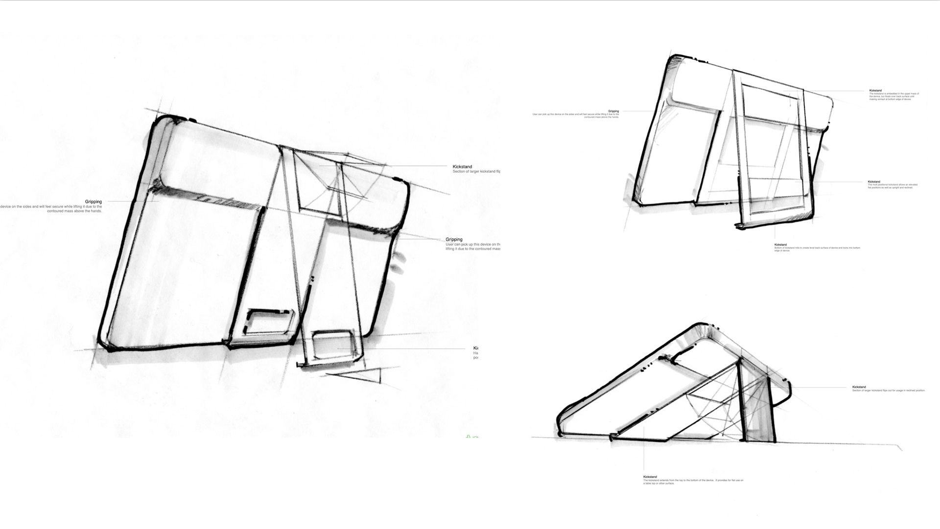 Project done with Steve Pratska for Intel.  Development of hybrid tablets for mobile use for in home use. Project consisted of two sizes, with varied geometries and forms driven by varied uses.  Standard motherboards were used for these studies allowing for reduced cost to users. Internal components allow for the tablet to be used as a television as well.